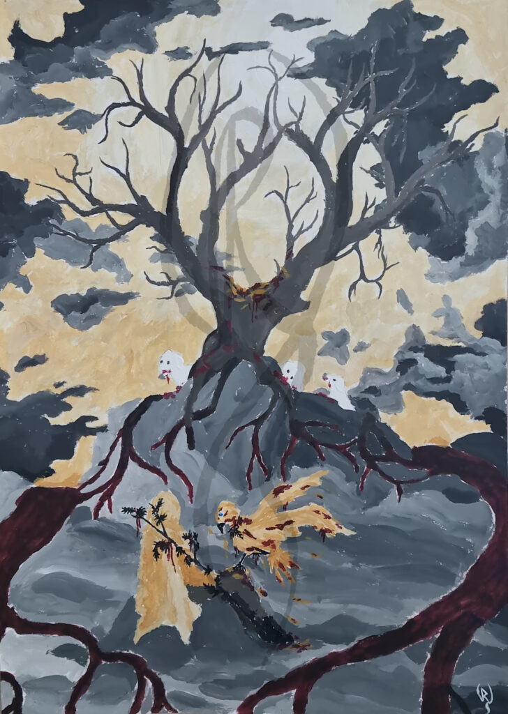 A project combining selected characters from all four stories of the Mabinogion with otherworldly landscapes, associated animals and the symbolic trees from the Ogham alphabet that match their personality. The use of red and white as the colours of Annwyn (the Welsh Otherworld) has also been considered in accordance to the mythology.